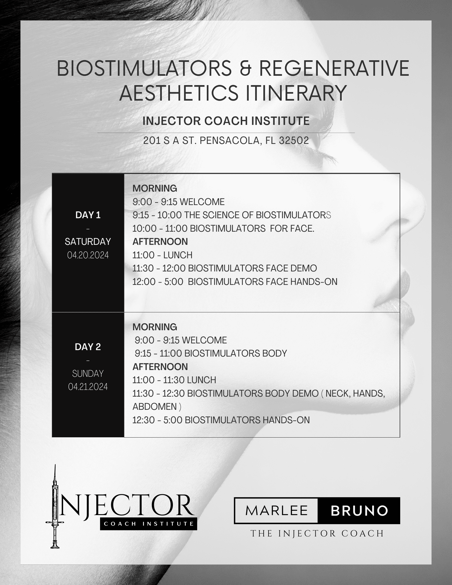 - Comprehensive post-course learning including continued mentorship and an integration session with the Injector Coach three weeks post course to keep you accountable